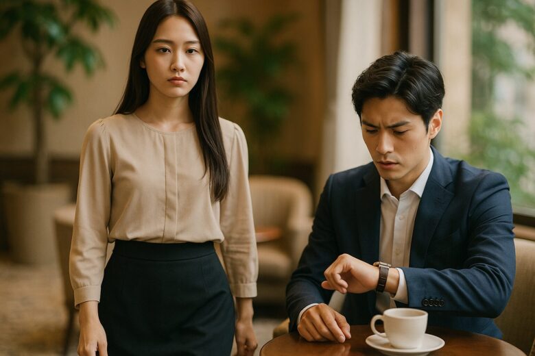 ・お見合い開始時間を過ぎてもお相手女性と合流できず、お見合い開始時間10分後に「電車を乗り間違えてしまい15分ほど遅刻します」緊急連絡が届く