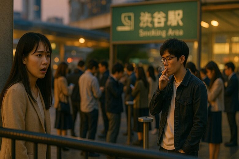 ・集合時間より早く着いたので駅周辺を探索していると、喫煙所でタバコを吸っているお相手男性を発見