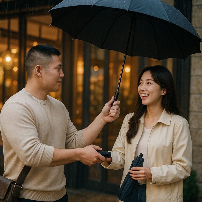 ・お相手男性が、カバンから折り畳み傘をさりげなく出して