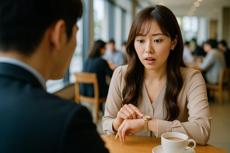 「時計(スマホ)を見ていて、早く切り上げられたそうだった」