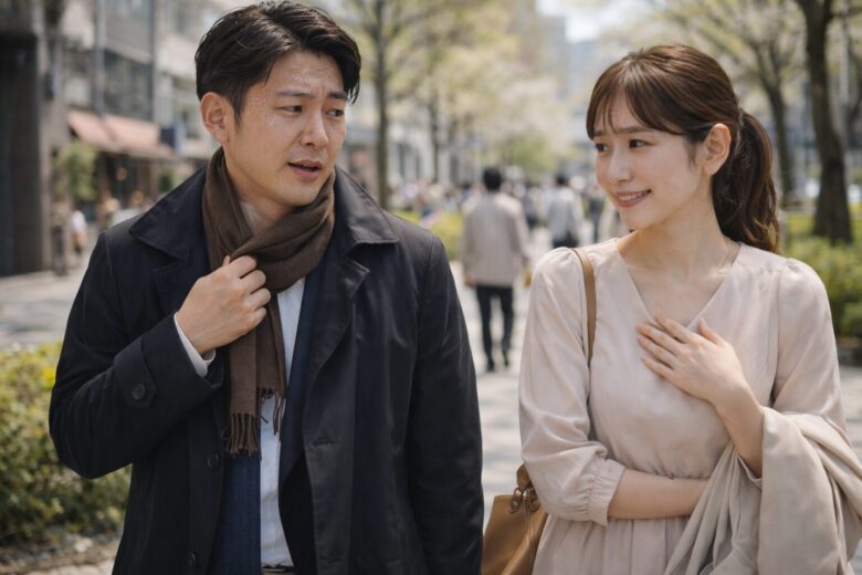 暖かい日にマフラーで汗だくだと、清潔感も落ちやすいし、隣を歩く側はどうしても気まずくなります。
